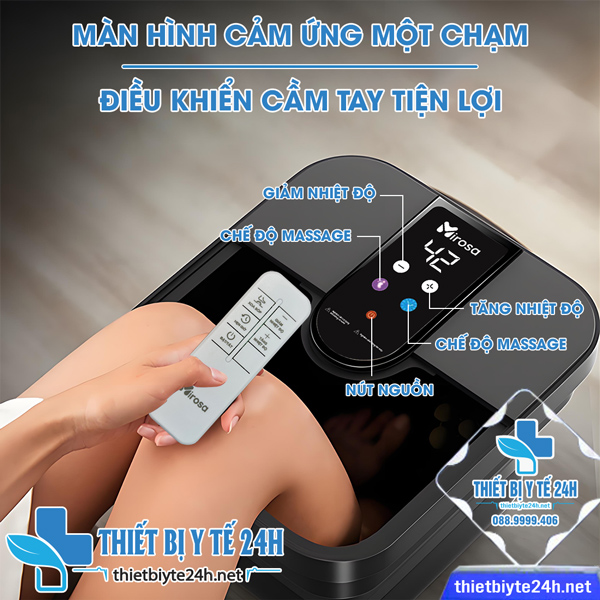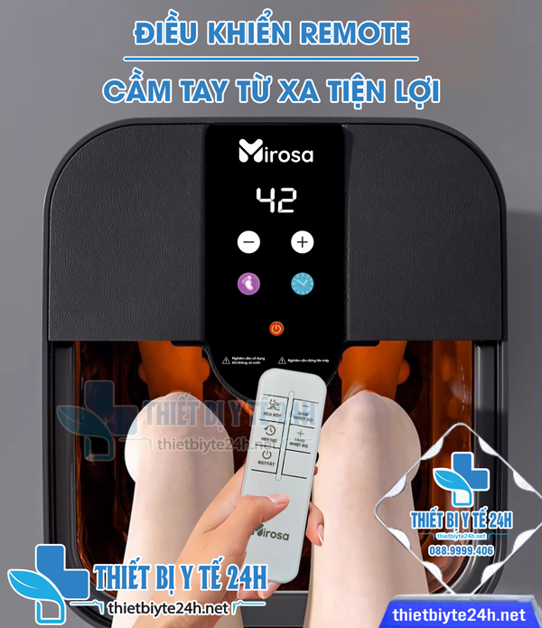 → Để mang lại trải nghiệm thuận tiện nhất, máy được trang bị kèm remote điều khiển từ xa, cho phép bạn chuyển chế độ hoặc điều chỉnh chức năng ngay cả khi đang nằm hoặc ngồi. Không cần cúi người hay thao tác trên thân máy, bạn vẫn có thể tận hưởng buổi ngâm chân trọn vẹn và thoải mái.