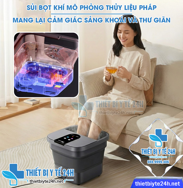 → Bên cạnh các cơ chế massage cơ học, thiết bị còn có chức năng tạo bọt khí, mô phỏng một dạng thủy trị liệu nhẹ nhàng. Những bọt khí li ti này liên tục kích thích bề mặt da chân, mang lại cảm giác xoa dịu và sảng khoái, giúp tối đa hóa hiệu quả thư giãn và trải nghiệm cao cấp của buổi ngâm chân.