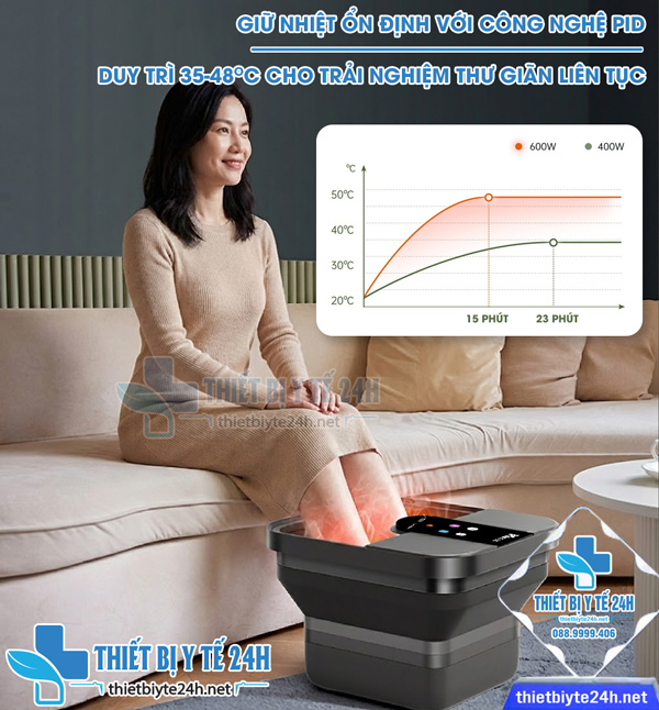 → Bồn ngâm chân được trang bị khả năng kiểm soát nhiệt độ nước tiên tiến, sử dụng công nghệ sưởi ấm hiệu suất cao để duy trì dải nhiệt độ tối ưu và ổn định, thường trong khoảng 35 độ C đến 48 độ C. Hệ thống này hoạt động hiệu quả trong việc loại bỏ sự dao động nhiệt độ đột ngột, đảm bảo rằng người dùng sẽ không bao giờ cảm thấy nước quá nóng hoặc lạnh bất ngờ, từ đó tối đa hóa sự thoải mái và tận hưởng trọn vẹn từng phút ngâm chân.