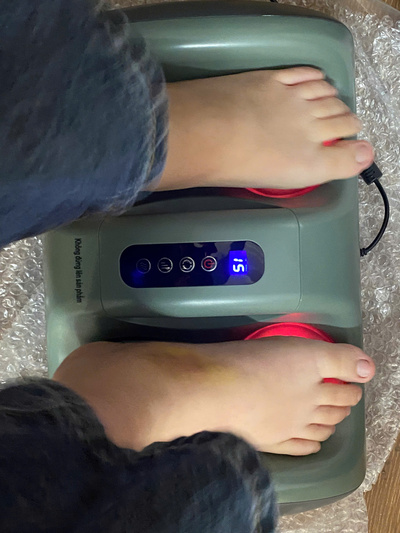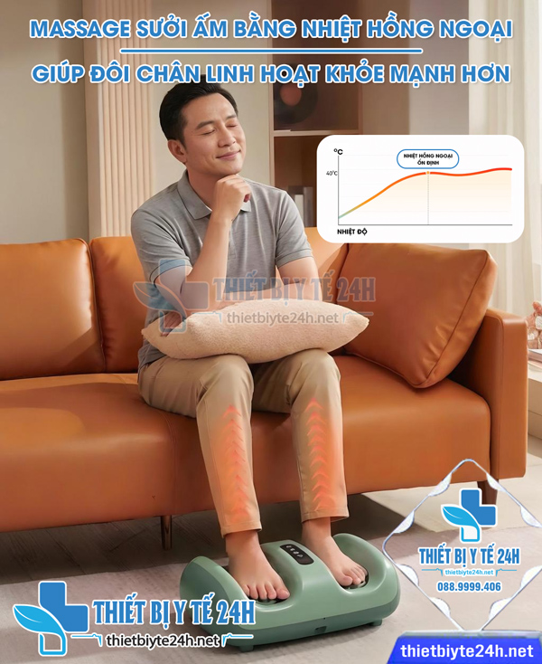 → Máy massage bàn chân Misuko FB-68 được tích hợp thêm nhiệt hồng ngoại kết hợp cùng con lăn 3D và rung bấm huyệt giúp tăng thêm hiệu quả massage. Tia hồng ngoại tác động sâu vào huyệt đạo giúp chúng được khơi thông, đem lại các lợi ích cho sức khỏe chân và tinh thần. Đồng thời nhiệt độ luôn được duy trì ở mức ổn định giúp giữ ấm lòng bàn chân và toàn bộ cơ thể, từ đó giúp tăng cường trao đổi chất, ngăn ngừa lão hóa và cải thiện giấc ngủ.