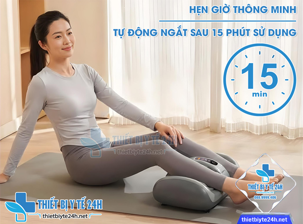→ Máy massage chân thông minh Misuko được trang bị tính năng hẹn giờ thông minh tự động ngắt sau 15 phút giúp người sử dụng có thể lựa chọn khoảng thời gian mát xa phù hợp với nhu cầu và thời gian của mình tận hưởng những phút giây thư giãn sau ngày làm việc mệt mỏi, tránh trường hợp massage quá lâu gây tổn thương cơ thể.
