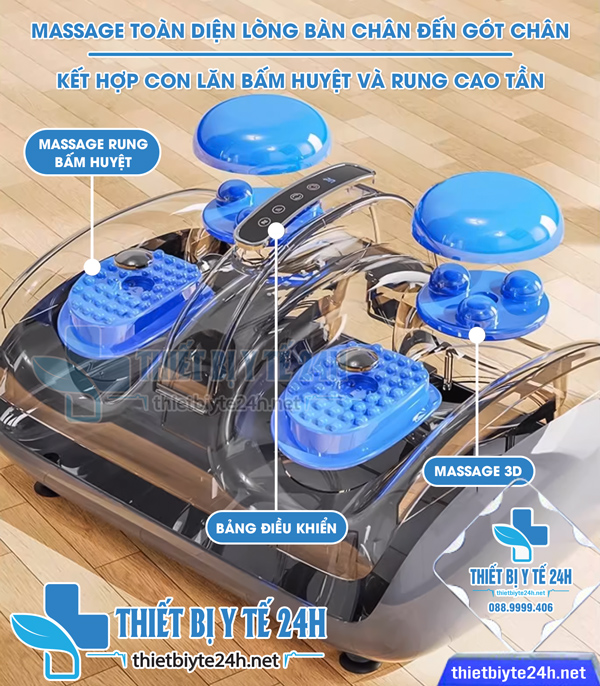 ✓ Ưu điểm 1: Massage chuyên sâu và toàn diện vùng bàn chân bằng rung bấm huyệt và con lăn 3D giúp tăng cường tuần hoàn: