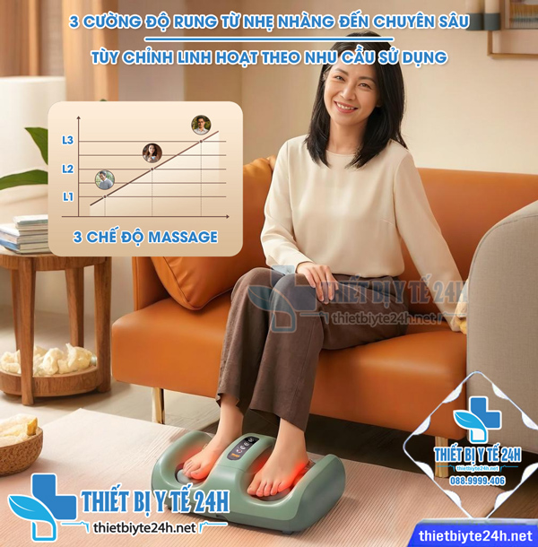 → Để đáp ứng nhu cầu thư giãn đa dạng, máy tích hợp tính năng điều chỉnh cường độ rung với 3 mức độ (L1 – Nhẹ nhàng, L2 – Trung bình, L3 – Chuyên sâu). Người dùng có thể dễ dàng chuyển đổi giữa các cấp độ này, cho phép cá nhân hóa trải nghiệm massage từ thư giãn nhẹ nhàng hàng ngày đến chăm sóc chuyên sâu hơn khi cơ thể mệt mỏi. Khả năng kiểm soát đơn giản này giúp bạn tối ưu hóa hiệu quả massage theo ý muốn.
