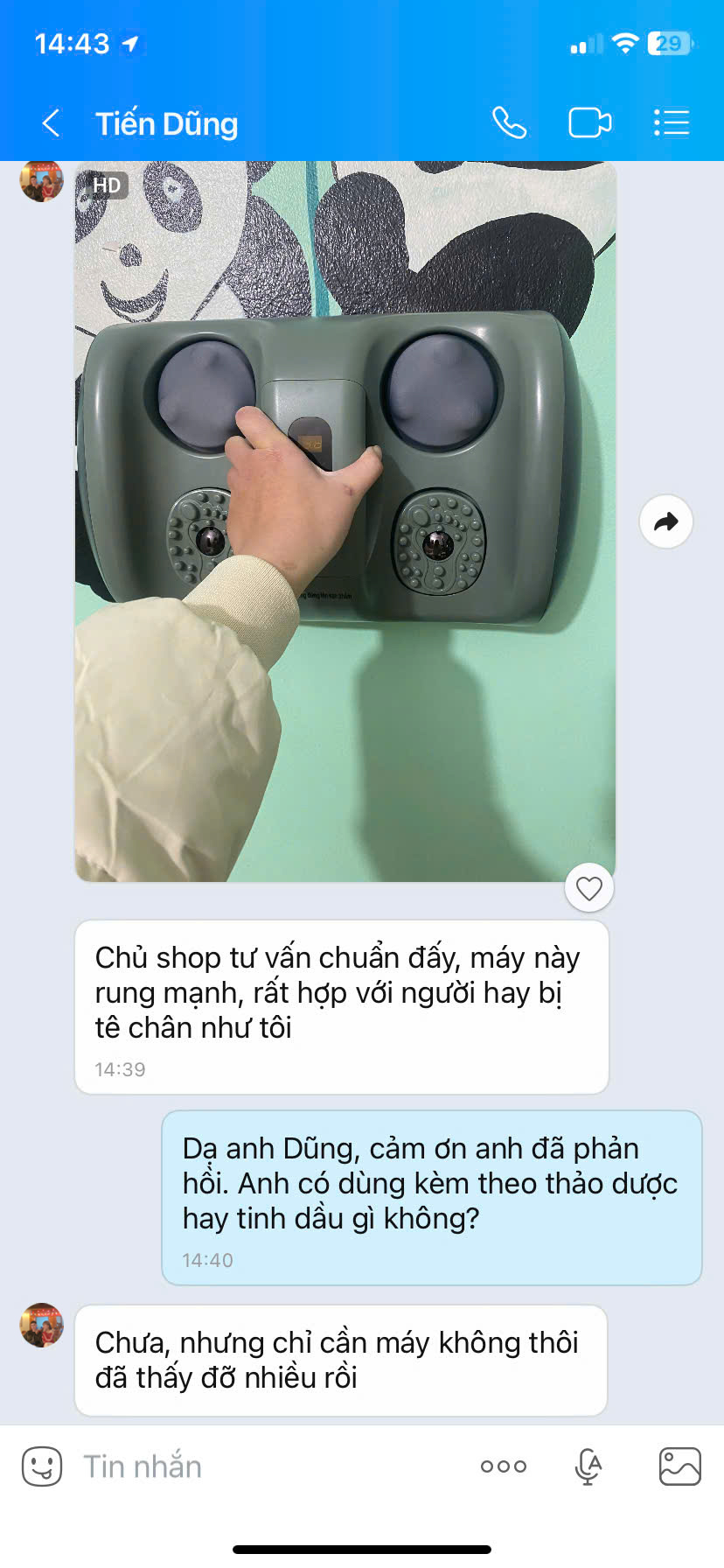 10 điểm ko có nhưng, hàng chất lượng độ rung hay xoa bóp đều phù hợp với mình, chị e phụ nữ như mình nên mua nè, giãn cơ được chân có giảm đi ít